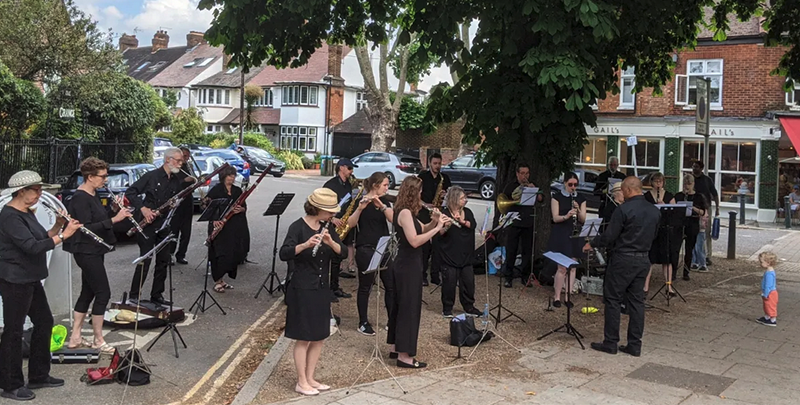 This takes them all over Richmond and Barnes with a wide range of pretty challenging repertoire; on occasion they venture as far afield as Windsor or Regents Park – and, obviously, out on the streets at Christmas. They also break down into a number of mini bands who work both with children and with older and more vulnerable members of the community. Although their standards are totally professional the band appears to be a large and very happy family who enjoy every minute of their music making together. Have a listen to just five minutes of their anniversary video and you will see what I mean.