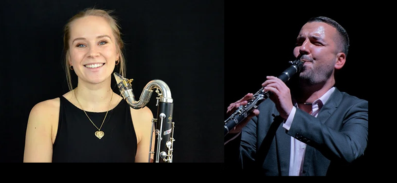 Hannah with her throaty bass clarinet and Boyan with his classical clarinet have been playing together for nearly five years: contemporary classics, jazz, South American rhythms and a sprinkling of electronics. For their full programme see the booking page here.