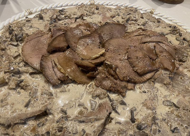 A Fraccassea Inglese Sopra Strurione o Manzo – otherwise known as spiced brisket which had been cooked long and slowly with onions and mushrooms and more spices in a great deal of Marsala and then ‘dressed’ in its juices and cream….