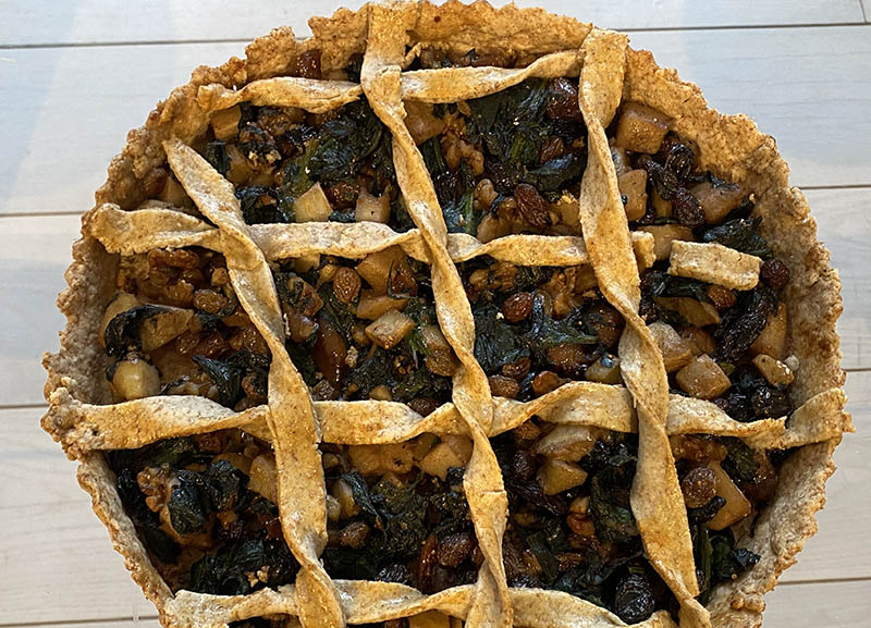 A herb tart which included raisins, currants, figs, walnuts and many spices along with spinach and parnsips….